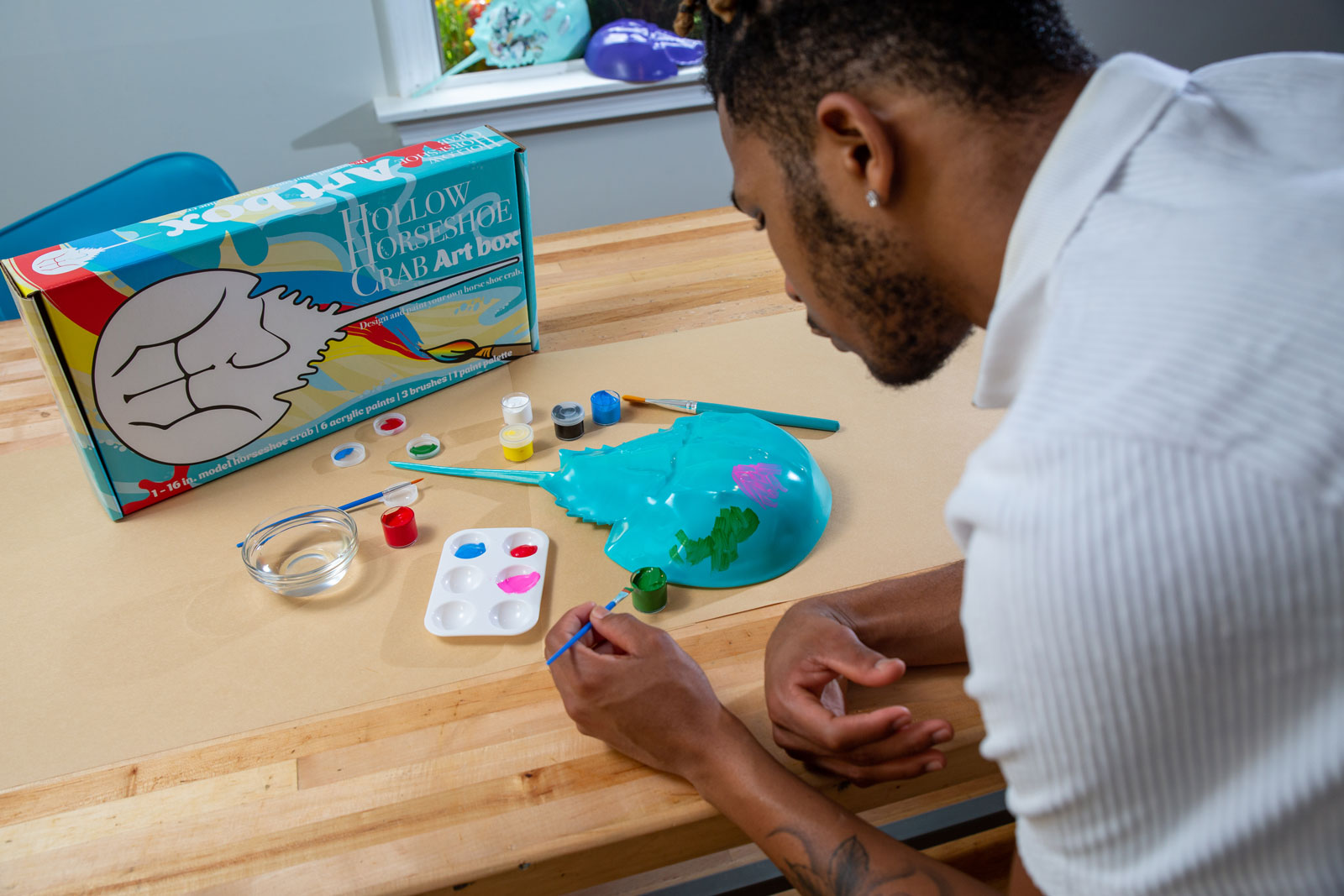 • Art box contains one 16-inch white plastic horseshoe crab model.